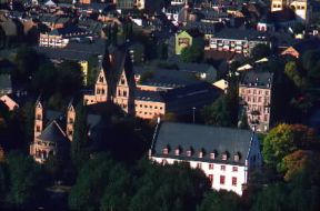 Coblenza. Le costruzioni più recenti, sullo sfondo, hanno seguito il tracciato viario ortogonale dell'originario centro romano.