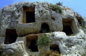 Pantalica . Un particolare della vasta necropoli rupestre.