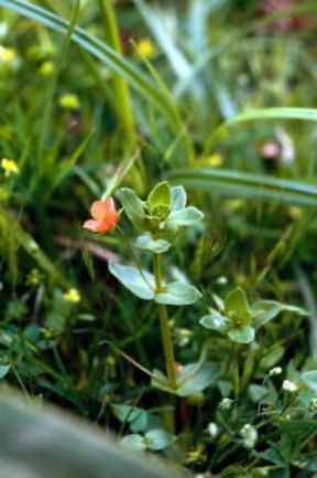 sf. [sec. XIV; dal greco anagallís-ídos]. Nome comune usato per indicare le piante erbacee del genere Anagallis della famiglia Primulacee e più propriamente la specie Anagallis arvensis, detta volgarmente anche mordigallina o bellinchina, comune nei luoghi incolti. Ha portamento prostrato, con molti rami gracili; foglie opposte, sessili, ovali-lanceolate, intere; i fiori sono piccoli, solitari, ascellari, peduncolati, con calice di cinque sepali e corolla gamopetala, rotata, con cinque lobi di colore azzurro (varietà coerulea) oppure rosso (varietà phoenicea). Gli stami sono cinque, l'ovario è supero e monostilo; il frutto è una capsula a pisside. Altre specie molto note sono Anagallis tenella dalla corolla rosea, Anagallis linifolia dal color rosso minio e Anagallis crassifolia dal color bianco, tutte diffuse nella zona mediterranea.