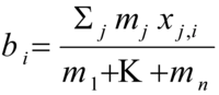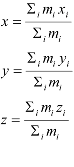 Dato un sistema di n punti materiali, rispettivamente di pesi p₁, p₂, ... pn, dalla legge di composizione delle forze si deducono, per le coordinate x, y, z del baricentro, le seguenti espressioni