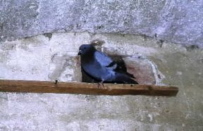 sm. [sec. XIII; latino colŭmbus]. Nome di vari Uccelli Columbiformi della famiglia dei Columbidi, talora usato come sinonimo di piccione. Colombo di gesso, simulacro di colombo che si mette fuori delle colombaie per attirarvi i piccioni (fig., chi se ne sta zitto durante una conversazione). Fig.: i due colombi, i due innamorati. § Il colombo pappagallo (Vinago walia) vive nell'Africa orientale e nella Penisola Arabica, frequentando in stormi le zone alberate e nutrendosi in prevalenza di frutta e semi. Lungo 30 cm, assomiglia ai piccioni, ma presenta un piumaggio più vivace in cui compaiono il giallo, il rosso, il grigio e il nero. Il colombo delle Nicobare (Coloenas nicobarica), presente nelle Nicobare, nelle Molucche e in altri arcipelaghi, reca in corrispondenza del collo numerose penne allungate che ricadono a mantello, per cui è detto anche colombo dal bavero.