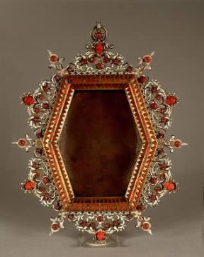 Cornice in rame dorato, coralli e smalti della manifattura trapanese (sec. XVII).
