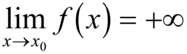 purché questi due limiti esistano. Si dice che una funzione y=f(x) tende all'infinito positivo, per x tendente a x0, quando essa assume, nell'intorno di x0, valori arbitrariamente alti; dato cioè un qualsiasi numero K>0, esiste un numero δ, dipendente da K, tale che per ogni punto x distante da x0 meno di δ si ha f(x)>K. In questo caso si dice che il limite di f(x) per x tendente ad x0 è uguale a “più” infinito e si scrive