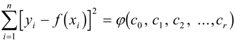dei coefficienti c0, c₁, c₂, ..., cr, saranno nulle le derivate parziali della funzione rispetto a ciascuna delle c; si ottengono pertanto r+1 equazioni in r+1 incognite. Il problema è quindi risolubile con un'approssimazione tanto maggiore quanto più è elevato l'ordine r del polinomio scelto, la cui scelta però dipende anche da considerazioni sulla natura del fenomeno studiato.