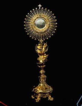 Ostensorio in oro, arte orafa italiana del sec. XVIII (Cagliari, Museo del Duomo).
