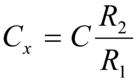 è usato invece per misurare capacità di condensatori: in esso due rami circuitali sono costituiti dal condensatore di capacità ignota Cx e da un condensatore di capacità nota C; all'equilibrio, che si ottiene facendo variare le due resistenze R₁ e R₂ si ha: