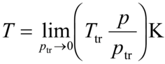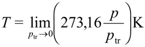 , in cui p0 è la pressione alla temperatura T0. Se si assume come temperatura di riferimento T0 la temperatura del punto triplo dell'acqua, Ttr, e si varia ripetutamente la pressione p0=ptr corrispondente, modificando la quantità di gas del termometro, si trova, per un dato gas, che la temperatura al punto di ebollizione dell'acqua si avvicina tanto più al valore reale di 373,15 ºC quanto più è bassa la pressione del gas al punto triplo, ptr: in altri termini, la temperatura nella scala del gas perfetto sarà data dal la relazione: