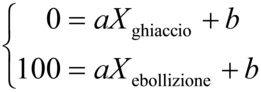 da cui si ricavano a e b; la temperatura dipende quindi dalla grandezza X (detta caratteristica termometrica) attraverso la relazione (detta funzione termometrica):