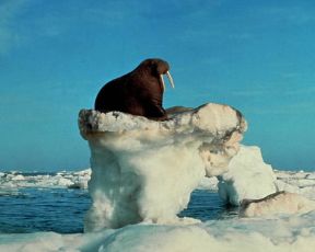 Tricheco (Odobenus rosmarus); la sua caratteristica più tipica sono i grossi canini superiori sporgenti.