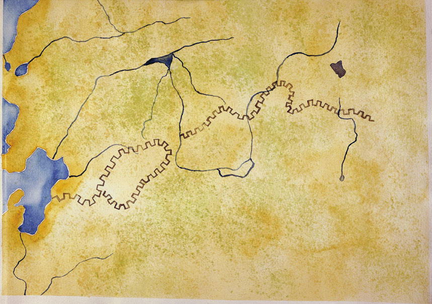 Veduta delle montagne attorno alla Muraglia La fortificazione si trova lungo una barriera naturale, sfrutta i rilievi montuosi per aumentare la sua forza e la sua capacità difensiva.
