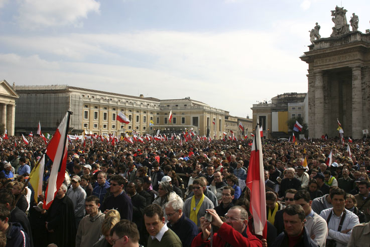 "La folla di fedeli ai funerali di Papa Giovanni Paolo II Dopo una lunga malattia, il Papa muore il 2 aprile 2005 nei suoi appartamenti in Vaticano. Il funerale viene celebrato l' 8 aprile, alla presenza dei potenti della Terra, tra la commozione dei credenti e della gente comune.