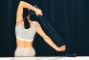 Esercizio per gli arti superiori. Movimenti per gli arti superiori da eseguire in piedi. La tensione che può derivare dal piegamento dei gomiti e dallo spostamento degli avambracci dietro il capo può essere alleviata eseguendo l'esercizio impugnando con le mani un asciugamano.