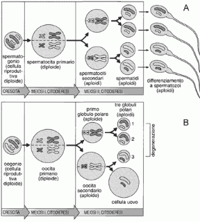 I gameti sono cellule aploidi (cioè con metà del numero normale di cromosomi), che vengono prodotte attraverso il processo di gametogenesi: a partire da cellule riproduttive diploidi (gli spermatogoni e gli oogoni) si formano rispettivamente gli spermatozoi (spermatogenesi) e le cellule uovo (oogenesi) (v. fig. 22.1).