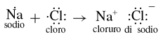Ognuno dei due ioni Na+ e Cl− assume la configurazione elettronica esterna a ottetto, caratteristica dei gas nobili (il sodio assume la configurazione del neo, il cloro quella dell'argo).