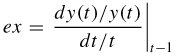 ossia come il rapporto tra la variazione percentuale di y e la variazione percentuale di t,valutata in t=1. Questa misura esprime una sorta di “rendimento di scala” locale, in quanto - in corrispondenza di ogni dato punto della funzione di produzione- esprime come varia l'output al variare (percentuale unitario) di tutti gli input.